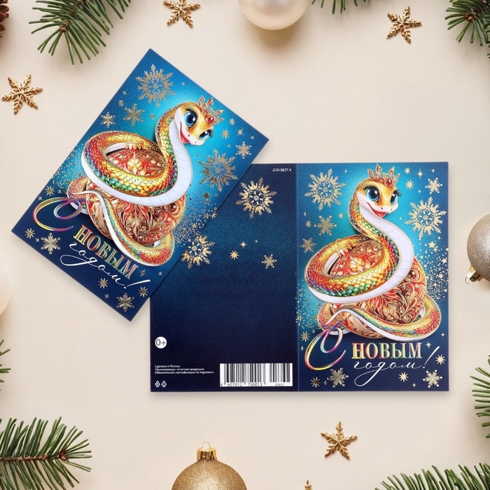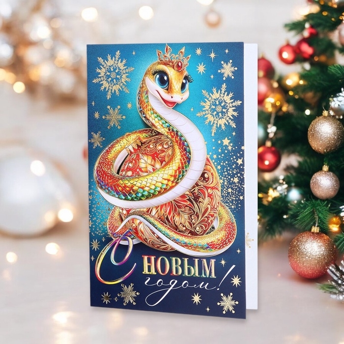 Открытка "С Новым Годом!" конгрев, тиснение, символ года, 12,5 х 19,4 см