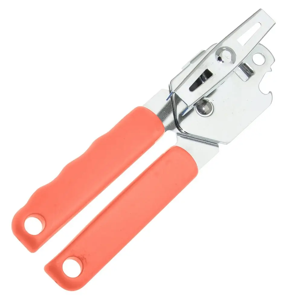 Открывалка для консервных банок делает ровный надрез на крышке и позволяет отрывать их абсолютно безопасно. Открывалка-бабочка представляет собой дисковый нож, оснащенный вращающим механизмом. Закрепите изделие на краю крышки, сомкните рукоятки и вращайте ручку винт до тех пор, пока не откроете банку. Использование не требует усилий, изделие максимально просто в применении и долговечно. Дисковый нож делает надрез так, что о края крышки невозможно порезаться. Изготовлено: рабочая часть из хромированной стали, ручки из ударопрочной пластмассы (ABS).