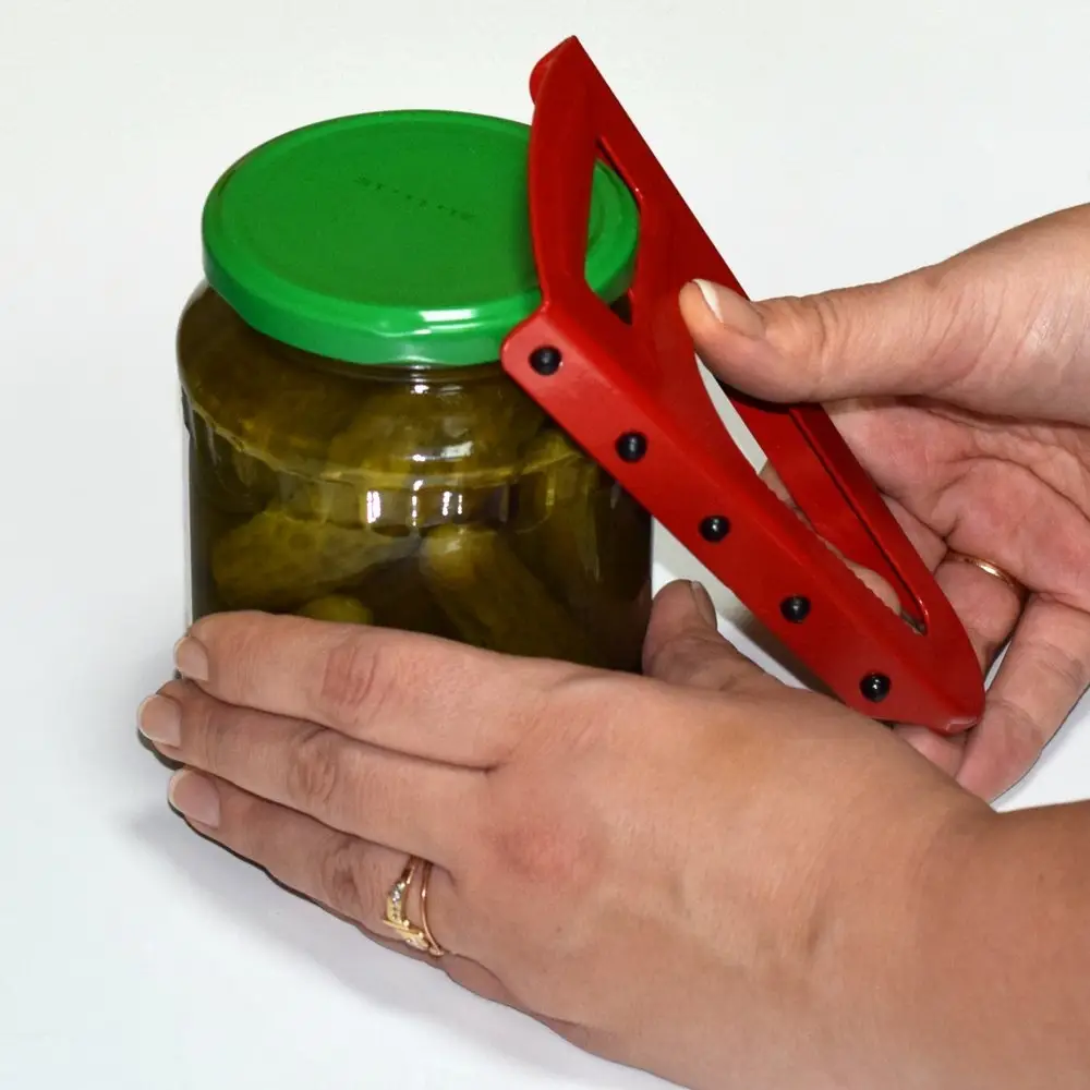 - Расположить открывалку на крышке банки;