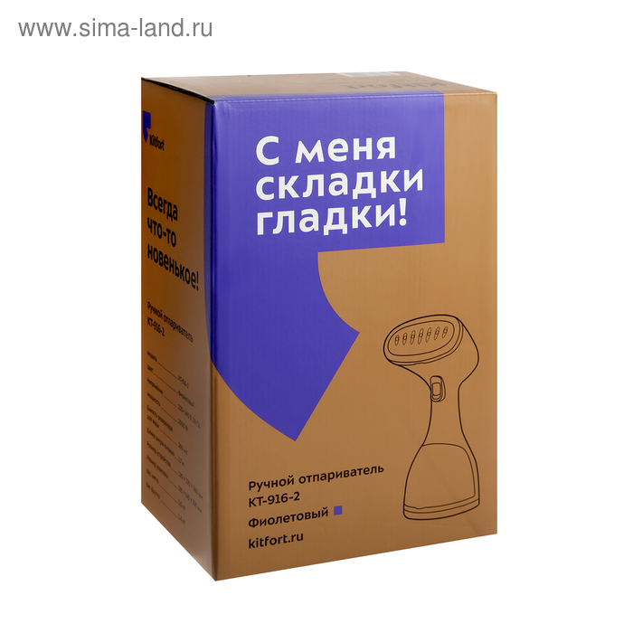 Отпариватель Kitfort KT-916-2, ручной, 1000 Вт, 260 мл, 20 г/мин, шнур 1.7 м, фиолетовый