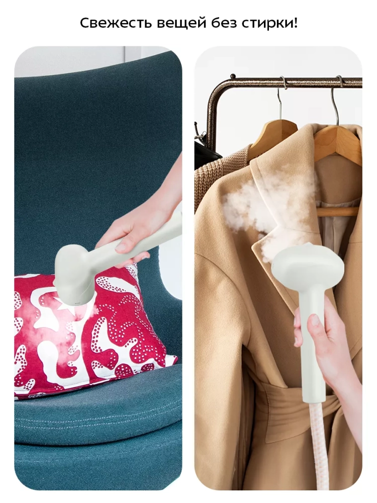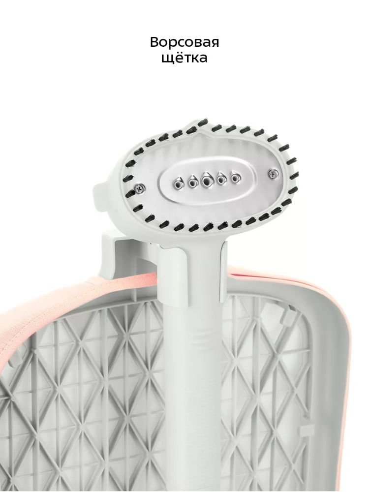 Гладильная доска отпаривателя фиксируется в трех положениях: горизонтальном, вертикальном и под углом. Также одежду можно подвесить на крючок отпаривателя, чтобы не перевешивать ее с вешалок, на которых она хранится в шкафу. В комплекте к отпаривателю идет ворсовая щетка, которая поможет счистить волосы и шерсть домашних животных с одежды и обивки мягкой мебели.