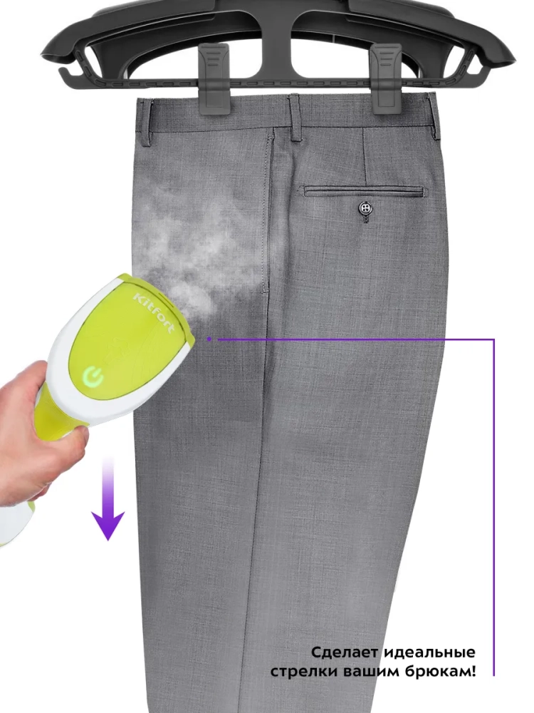 Ручной отпариватель Kitfort КТ-9107 предназначен для разглаживания изделий из текстиля с помощью потока горячего пара. Устройство обладает такими достоинствами, как мощный поток пара, минималистичный дизайн, компактность и легкий вес. Его удобно брать с собой в дорогу - устройство не займет много места. Ручной отпариватель приведет в порядок вещи быстро и практически в любом месте - без раскладывания гладильной доски. Одежда при этом может висеть на вешалке, сушилке для белья или веревке. Ручной отпариватель - более функциональное и универсальное устройство, чем утюг. Под действием пара волокна ткани не растягиваются и не сжимаются, как под воздействием утюга, а приобретают объемность, эластичность и блеск. Отпариватель не деформирует ткани и не оставляет заломов или лоснящихся пятен на одежде. Помимо отпаривания одежды, вы можете отпарить занавески и портьеры (для этого их не обязательно снимать), обивку мягкой мебели, матрасы или мягкие игрушки. При этом вы не только разгладите складки и вернете форму вещам, но и освежите и продезинфицируете их, так как горячий пар хорошо убивает пылевых клещей и другие микроорганизмы. Благодаря мощному потоку пара ручной отпариватель позволяет разгладить даже те вещи, которые обычно не гладят - пышные платья со сложной структурой, шубы, дубленки или куртки. Также с его помощью можно готовить к сезону вещи, у которых при хранении появился затхлый запах - отпариватель решает эту проблему без всякой стирки. Горячий пар устраняет неприятные запахи и освежает ткани, поэтому он отлично поможет в ситуации, когда вы один раз надевали вещь и хотите сделать это еще раз, не стирая ее. Если вы находились в помещении, полном сигаретного дыма, и одежда пропахла табаком, то с помощью отпаривателя можно быстро убрать запах и освежить ее. С насадкой для формирования стрелок станет гораздо удобнее гладить брюки и юбки.