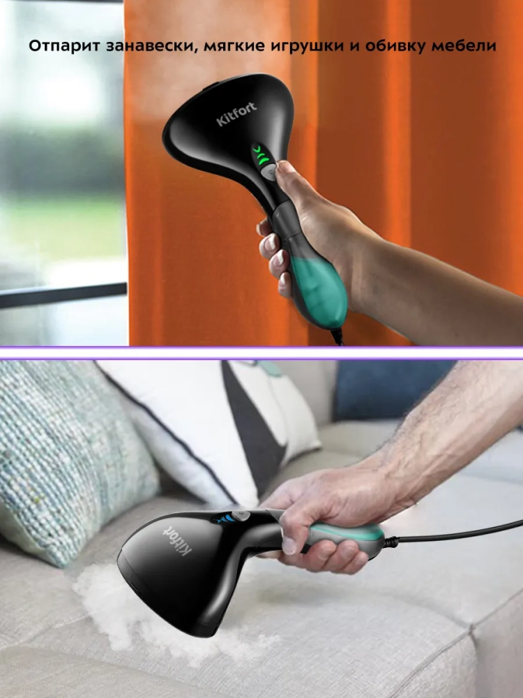 Отпариватель — устройство для разглаживания изделий из текстиля с помощью потока горячего пара. Ручной отпариватель Kitfort КТ-9116 обладает такими достоинствами, как: стильный дизайн, компактность и удобство использования. Отпариватель занимает мало места в чемодане или на полке. Его удобно брать с собой в дорогу. Ручной отпариватель приведет в порядок вещи быстро и практически в любом месте — без раскладывания гладильной доски. Одежда при этом может висеть на вешалке, на сушилке для белья или на веревке. Ручной отпариватель — более функциональное и универсальное устройство, чем утюг. Под действием пара волокна ткани не растягиваются и не сжимаются, как под воздействием утюга, а приобретают объемность и эластичность. Отпариватель не деформирует ткани и не оставляет заломов или лоснящихся пятен на одежде. Помимо отпаривания одежды, вы можете отпарить занавески и портьеры (для этого их не обязательно снимать), обивку мягкой мебели, матрасы или мягкие игрушки. При этом вы не только разгладите складки и вернете форму вещам, но и освежите и продезинфицируете их, так как горячий пар хорошо убивает пылевых клещей и другие микроорганизмы. Благодаря мощному потоку пара ручной отпариватель позволяет разгладить даже те вещи, которые обычно не гладят — пышные платья со сложной структурой, шубы, дубленки или куртки. Также с его помощью можно готовить к сезону вещи, у которых при хранении появился затхлый запах — отпариватель эту проблему решает без всякой стирки. Горячий пар устраняет неприятные запахи и освежает ткани, поэтому он отлично поможет в ситуации, когда вы один раз надевали вещь и хотите сделать это еще раз, не стирая ее. Если вы находились в помещении, полном сигаретного дыма, и одежда пропахла табаком, то с помощью отпаривателя можно быстро убрать запах и освежить ее.