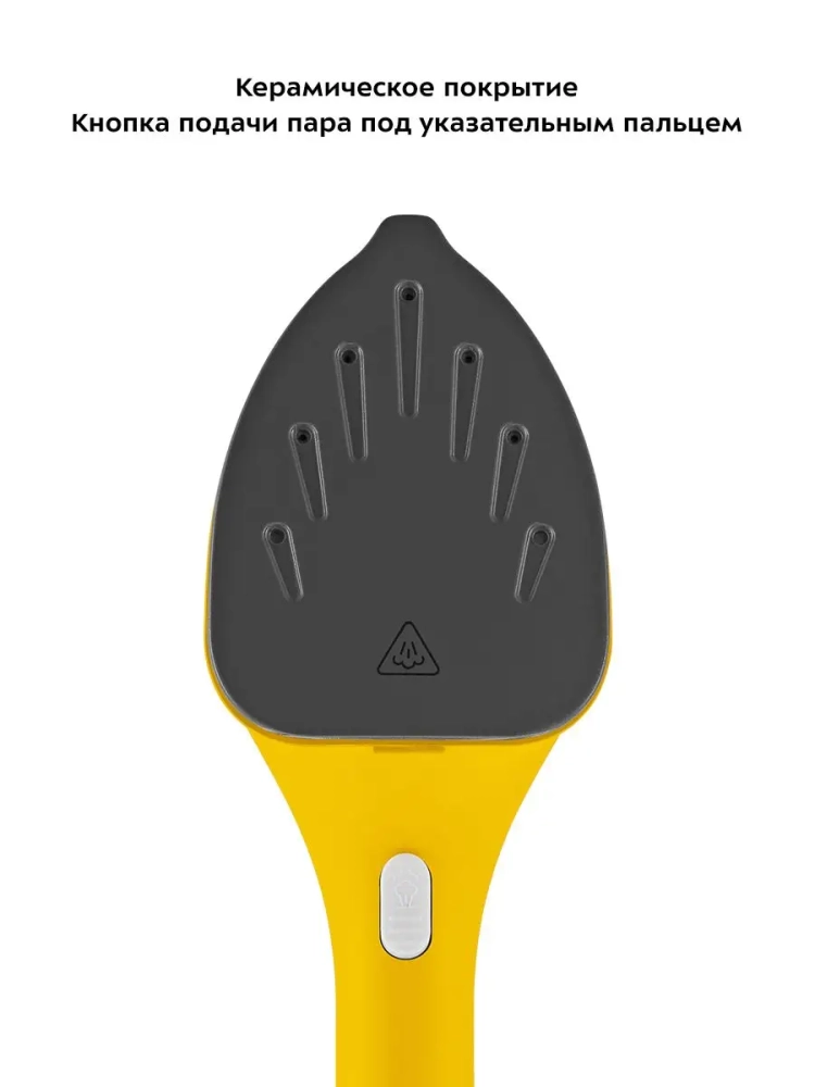 Рабочая поверхность, по форме напоминающая утюг, разгладит ткань даже в труднодоступных местах, например, рядом с пуговицами. Кнопка подачи пара расположена на ручке, поэтому ее удобно нажимать и удерживать при использовании отпаривателя.