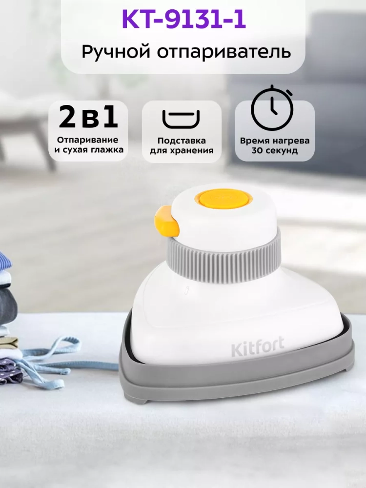 Ручной отпариватель Kitfort КТ-9131 предназначен для разглаживания изделий из текстиля с помощью потока горячего пара. Устройство обладает такими достоинствами, как мощный поток пара, минималистичный дизайн, компактность и легкий вес. Его удобно брать с собой в путешествие — устройство не займет много места.