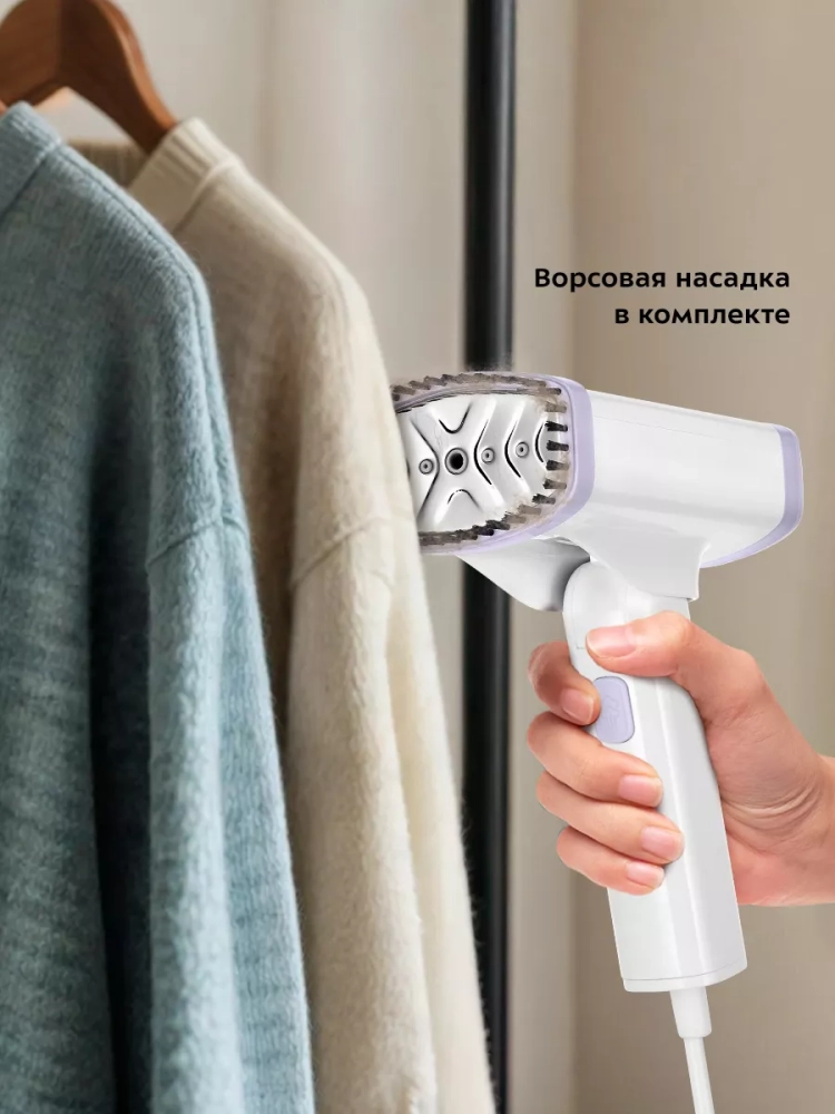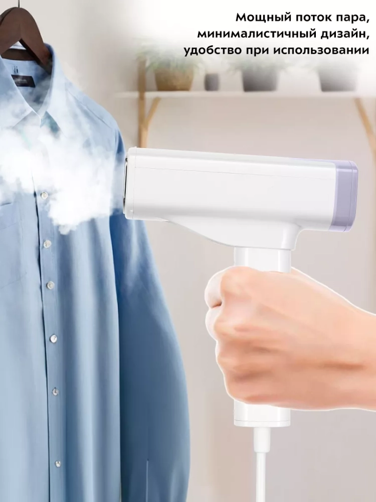 Отпариватель легко хранить и брать с собой в поездки благодаря складной ручке.