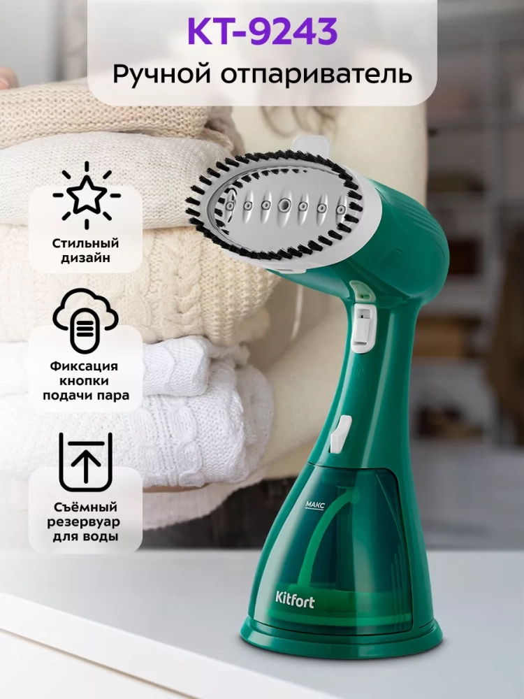 Ручной отпариватель Kitfort КТ-9243 предназначен для разглаживания изделий из текстиля с помощью потока горячего пара. Ручной отпариватель приведет в порядок вещи быстро и практически в любом месте без раскладывания гладильной доски. Одежда при этом может висеть на вешалке, сушилке для белья или веревке. Устройство обладает такими достоинствами, как мощный поток пара, минималистичный дизайн, удобство при использовании и хранении.