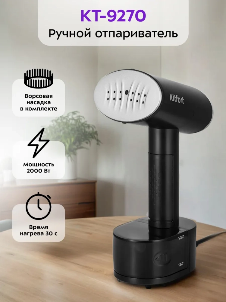 Ручной отпариватель Kitfort КТ-9270 предназначен для разглаживания изделий из текстиля с помощью потока горячего пара. Устройство приведет в порядок вещи быстро и практически в любом месте без раскладывания гладильной доски. Одежда при этом может висеть на вешалке, сушилке для белья или веревке. Устройство обладает такими достоинствами, как мощный поток пара, минималистичный дизайн, удобство при использовании и хранении.