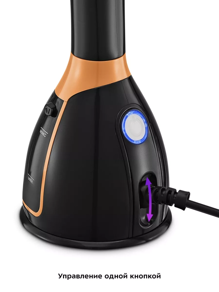 В отпаривателе КТ-9277 управление подачей пара осуществляется с помощью одной кнопки на ручке прибора. Шнур отпаривателя оснащен защитой от перегиба, что увеличивает срок службы прибора. В комплекте предусмотрена ворсовая насадка, которая поможет очистить вещи от пыли, ворса, волос и шерсти домашних животных. Для удобства заполнения резервуара для воды в комплекте есть мерный стакан.