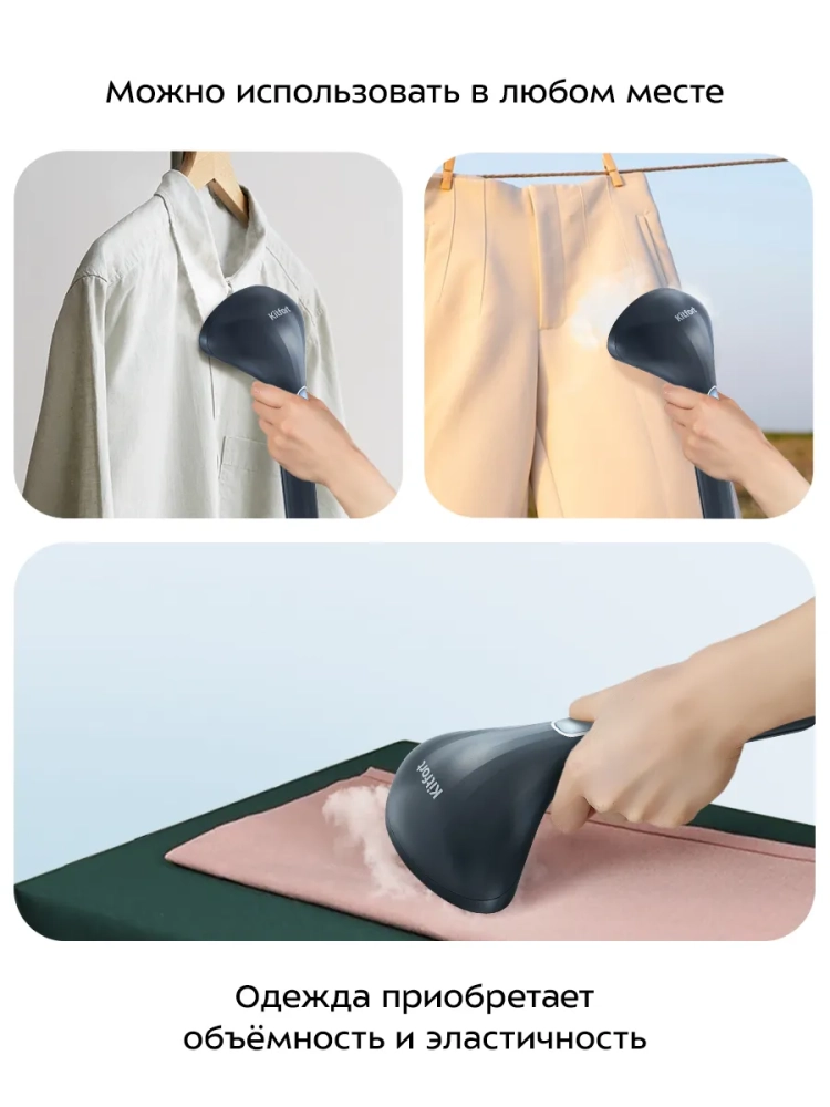 Ручной отпариватель — более функциональное и универсальное устройство, чем утюг. Отпариватель не деформирует ткани и не оставляет заломов или лоснящихся пятен на одежде. Помимо отпаривания одежды вы можете отпарить занавески и портьеры (для этого их не обязательно снимать), обивку мягкой мебели, матрасы или мягкие игрушки. При этом вы не только разгладите складки и вернете форму вещам, но освежите и продезинфицируете их, так как горячий пар хорошо убивает пылевых клещей и другие микроорганизмы.