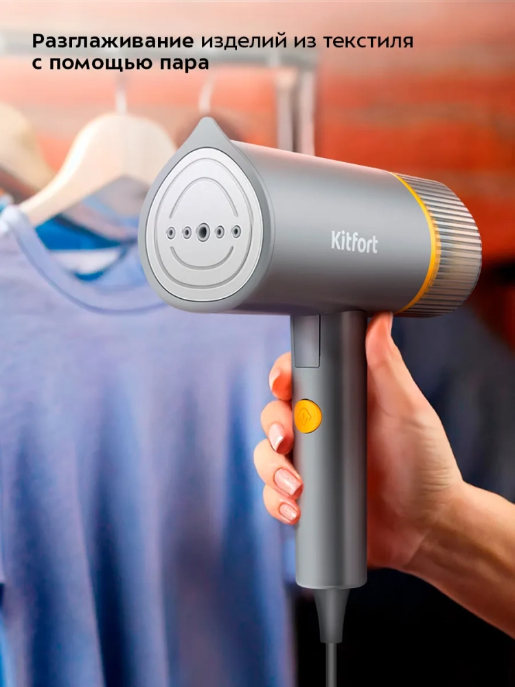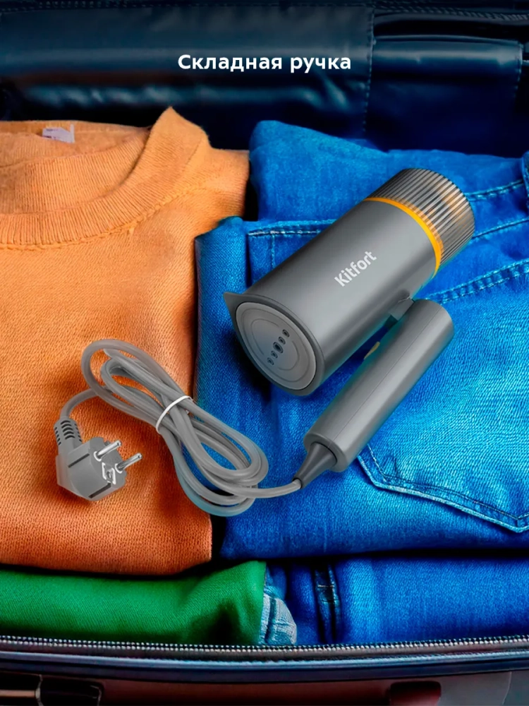 Ручной отпариватель Kitfort КТ-9304 предназначен для разглаживания изделий из текстиля с помощью потока горячего пара. Устройство обладает такими достоинствами, как мощный поток пара, минималистичный дизайн, удобство при использовании и хранении. Его можно брать с собой в дорогу — устройство не займет много места. Ручной отпариватель приведет в порядок вещи быстро и практически в любом месте — без раскладывания гладильной доски. Одежда при этом может висеть на вешалке, сушилке для белья или веревке.