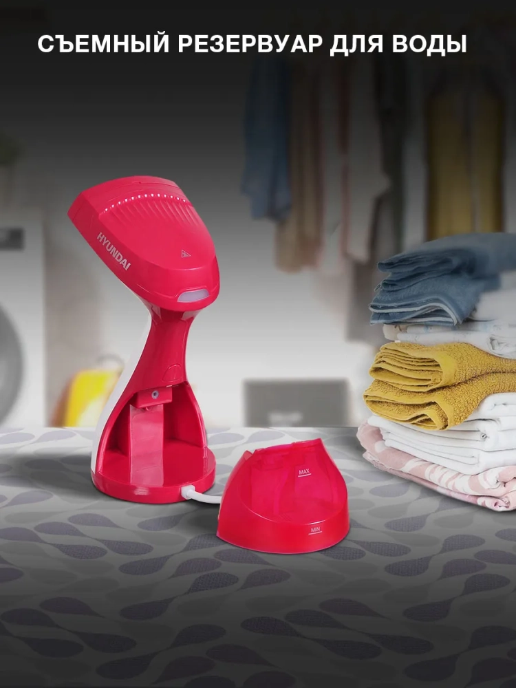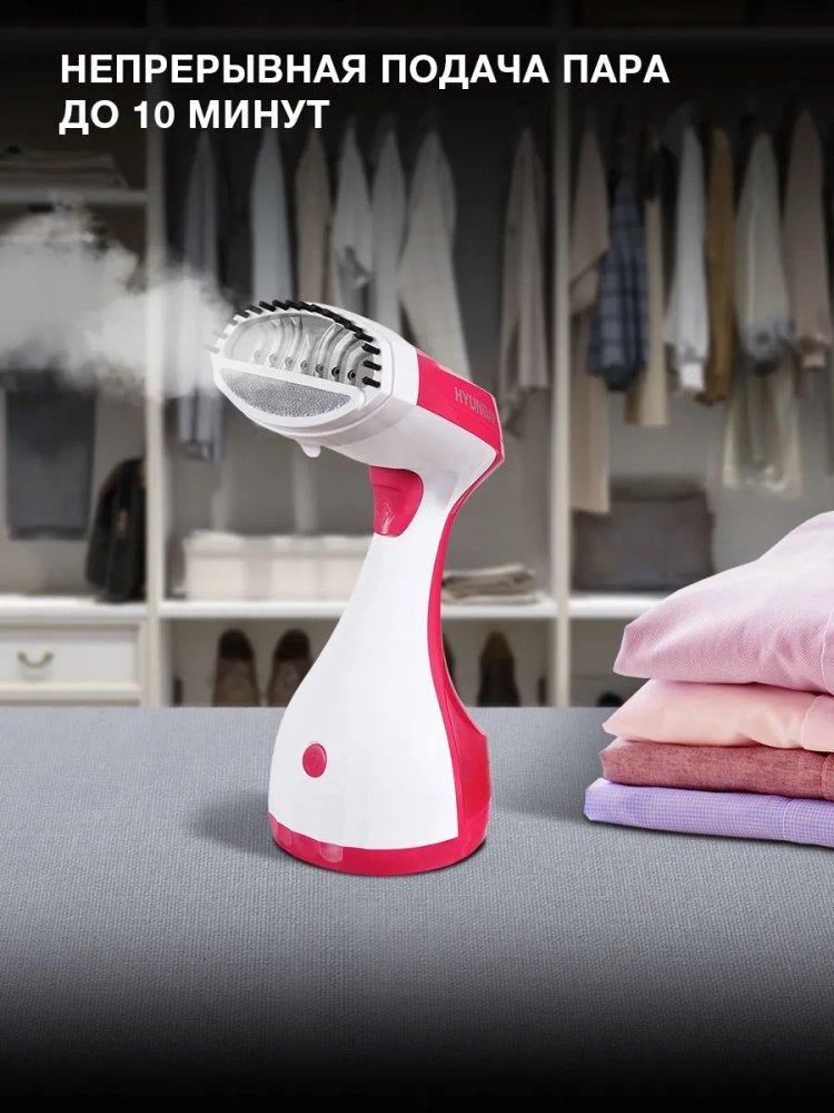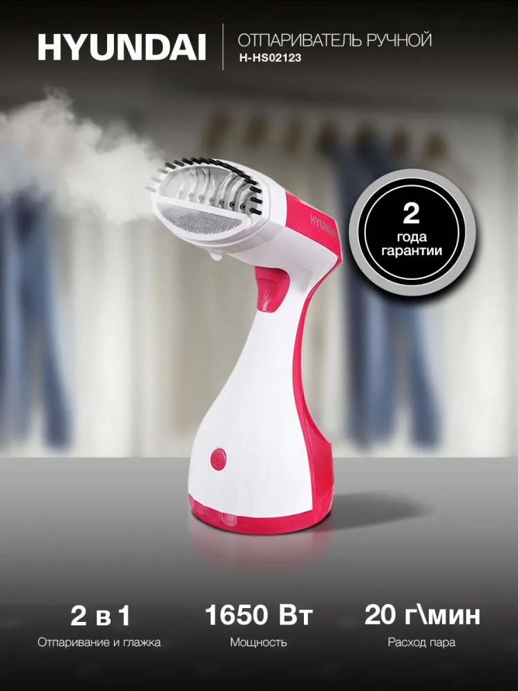 Отпариватель ручной Hyundai H-HS02123 белый/вишневый, мощность 1650Вт, в комплекте Насадка-щетка 1 шт.