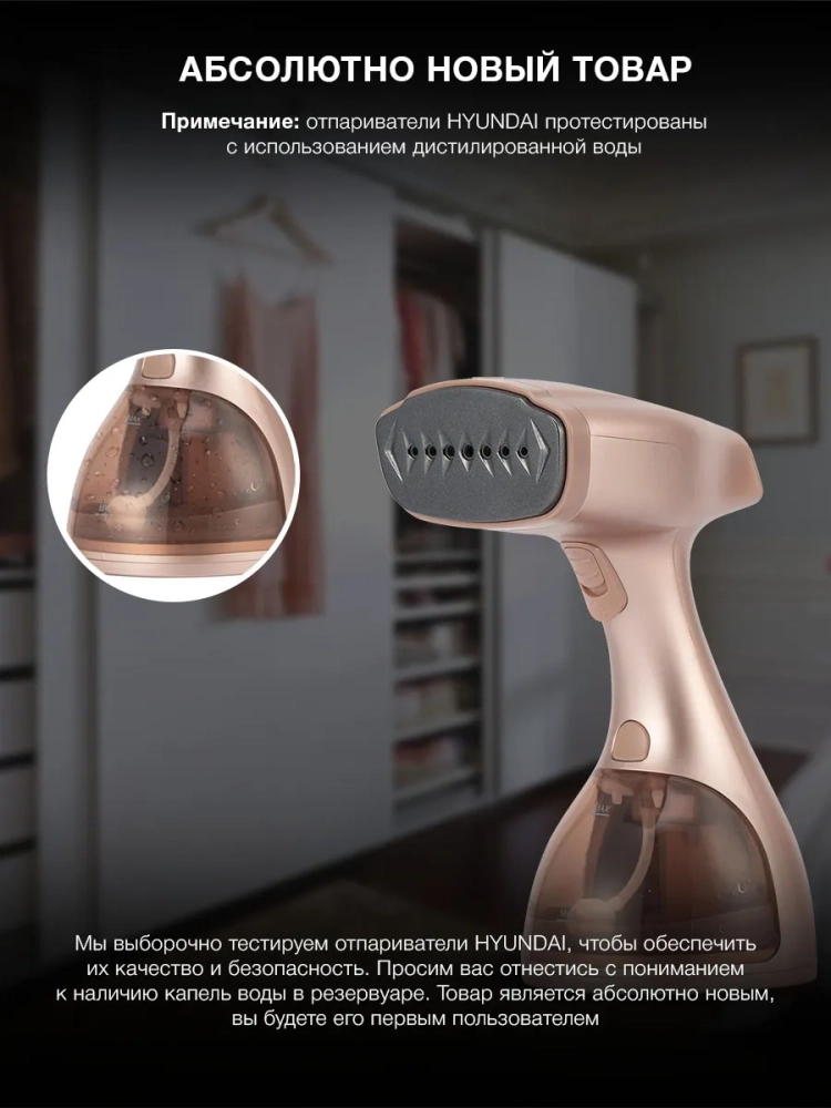 Отпариватель ручной Hyundai H-HS02975 золотистый, мощность 1650Вт, в комплекте Насадка-щетка