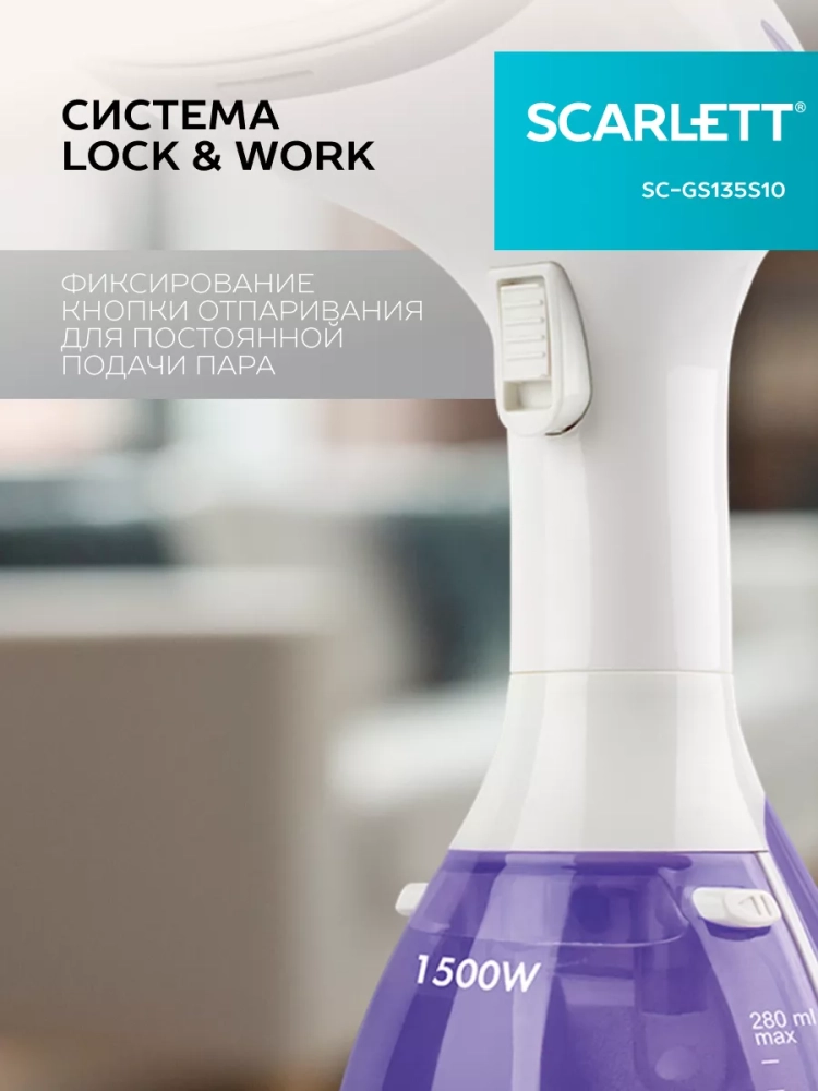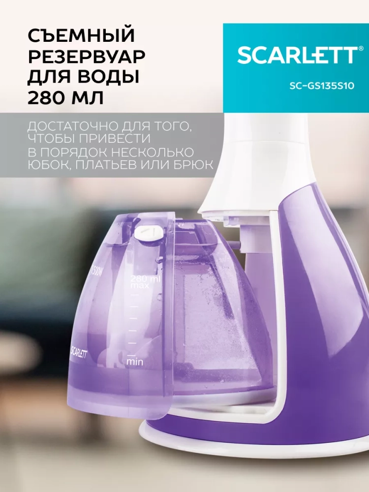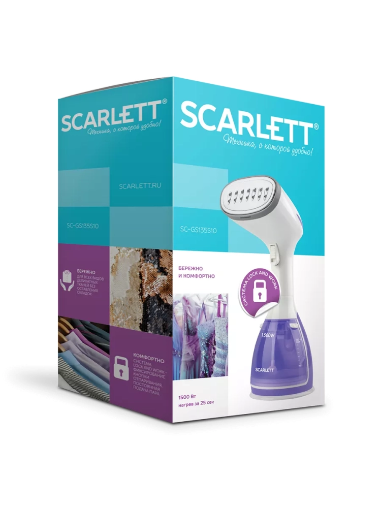 Ручной отпариватель SC-GS135S10 избавит вас от складок и освежит одежду без какой-либо гладильной доски. Пальто, куртки, рюши, оборки, кокетки, прочие декоративные элементы не проблема. Прибор выдает пар до 60 г/мин. Резервуара объемом 280 мл достаточно для того, чтобы привести в порядок несколько юбок, платьев, брюк и т.п. Благодаря мощности 1500 Вт долго ждать не понадобится всего 25 секунд, и можете приступать! А для более качественной обработки одежды можно использовать насадки, входящие в комплект.
