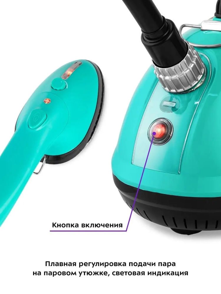 Отпариватель КТ-9123 плавную регулировку подачи пара для различных типов тканей. Кнопка подачи пара и регулятор находятся на утюжке, что очень удобно.