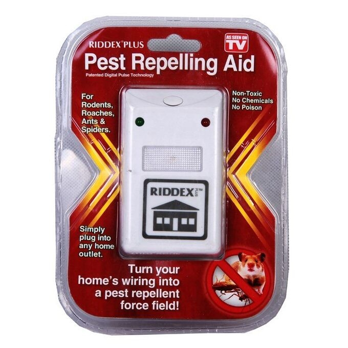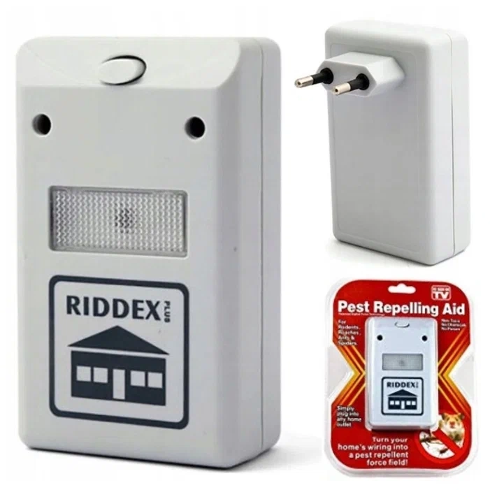 Принцип действия отпугивателя грызунов и насекомых основан на использовании проложенной в помещении электрической проводки. Pest Repelling Aid работает от электрической сети 220В, создавая вокруг себя поле высокочастотных импульсов, которые сделают жизнь наглых вредителей невыносимой и заставят их покинуть Ваш дом навсегда! После подключения отпугивателя к сети проводка превращается в огромный репеллер, который абсолютно не несет никакой угрозы для здоровья человека и домашних животных, а также не влияет на работу других электронных приборов, подключенных к используемой сети. Электронный отпугиватель Planka Pest Repelling Aid - это универсальное устройство способное отпугивать множество грызунов из того места, где оно установлено. Благодаря инновационной цифровой технологии импульса, все ваши "нежелательные сожители" покинут Ваше жилище, а новые просто не сунуться к Вам в дом. Прост и удобен в использовании (работает от электросети 220-230В); Безвреден для людей (и детей в частности); Не влияет на кошек и собак; Не использует ультразвук; Не влияет на работу других электрических приборов; Срок годности неограничен; Универсален в борьбе с грызунами (крысы, мыши) Во время работы электромагнитное излучение не создает помех для телевизионного или радиосигнала, можно без проблем пользоваться мобильным интернетом или получать сигнал через Wi-Fi. Кратко о товаре: Средство от грызунов. Нетоксичен, никаких химикатов, никакого яда. Подключается к любой домашней розетке 220В