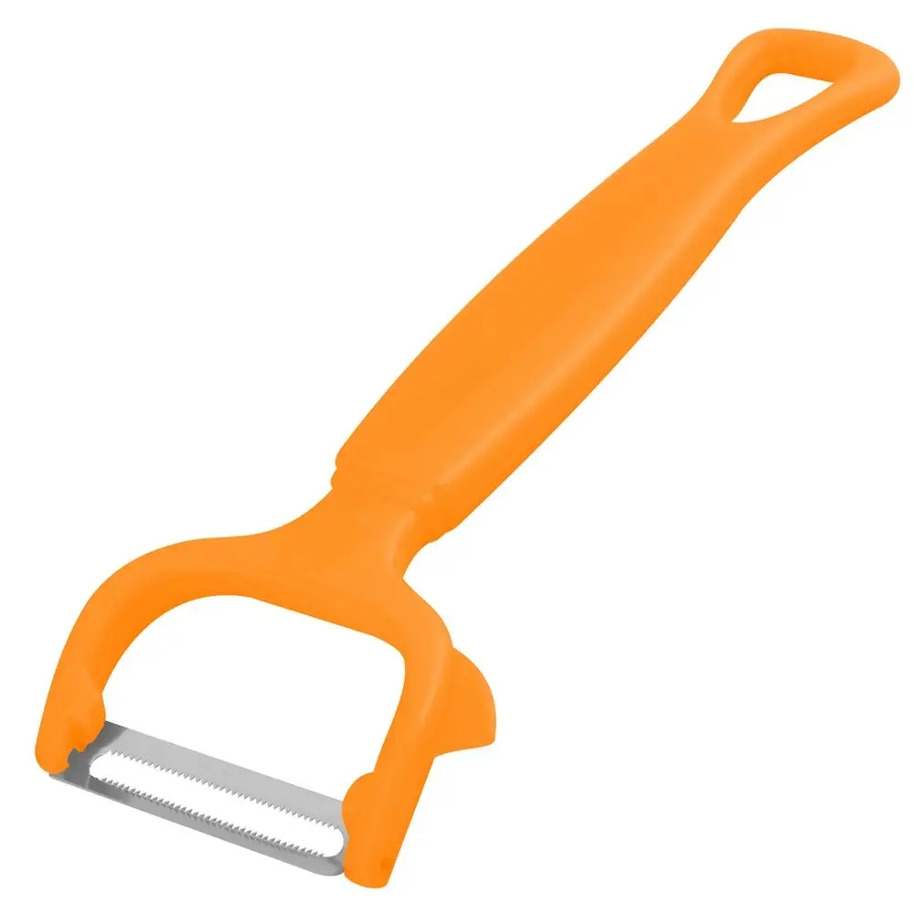 Овощечистка — незаменимое приспособление для любой кухни. Специальная форма ножа задает глубину среза, подходит для срезания тонкой и толстой кожицы. Сбоку есть пластиковый выступ, который позволяет удалять глазки и обрабатывать неровности. Изделие просто в применении, не нуждается в особом уходе. Лезвие изготовлено из коррозионностойкой стали, ручка из пластмассы (полипропилен). После использования промойте проточной водой с моющими средствами.
