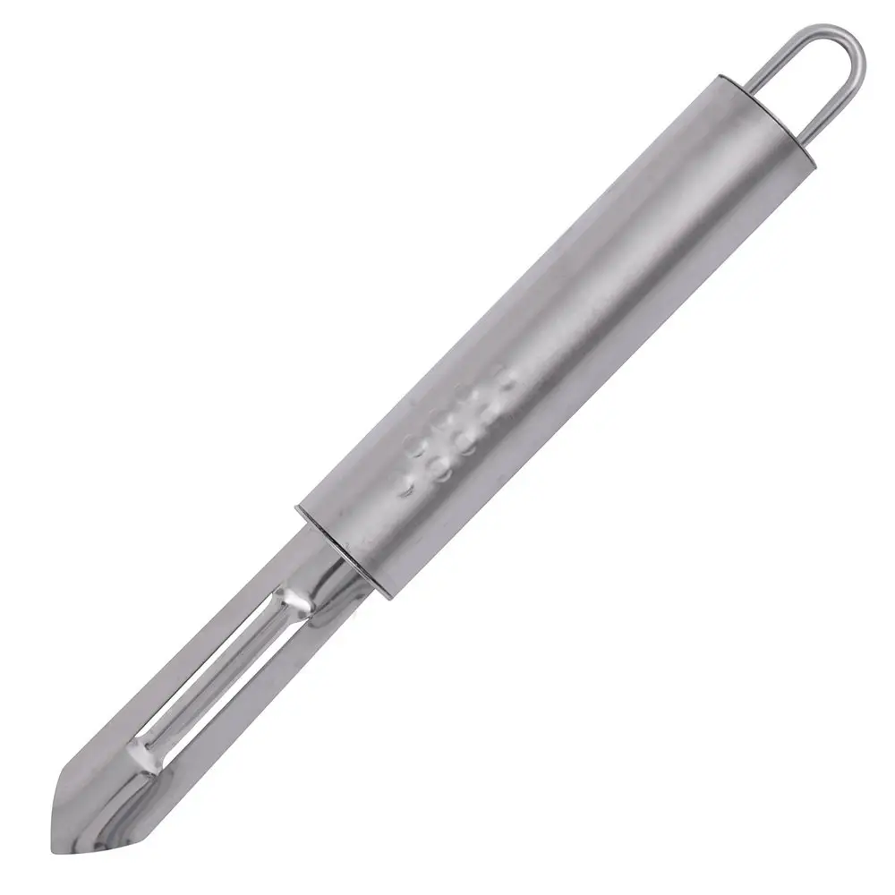 Овощечистка-рыбочистка — удобный инструмент для очистки от кожуры овощей и фруктов, а также чистки рыбы. Изделие изготовлено из коррозионностойкой (нержавеющей) стали. Приспособление выполнено в стильном дизайне, для удобства хранения на ручке есть петля. После применения мойте мягкой щеткой с жидкими моющими средствами.