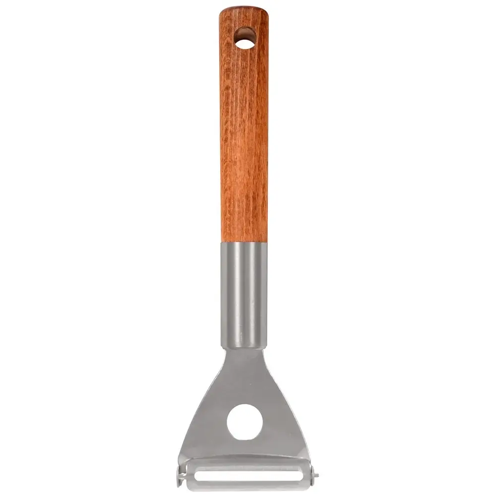 Используется для очистки овощей и фруктов. Оригинальная конструкция ножа задает необходимую глубину очищаемого слоя и сведет к минимуму отходы. Изготовлено: рабочая часть из коррозионностойкой (нержавеющей) стали, ручка из дерева. Общая длина 19,5 см.