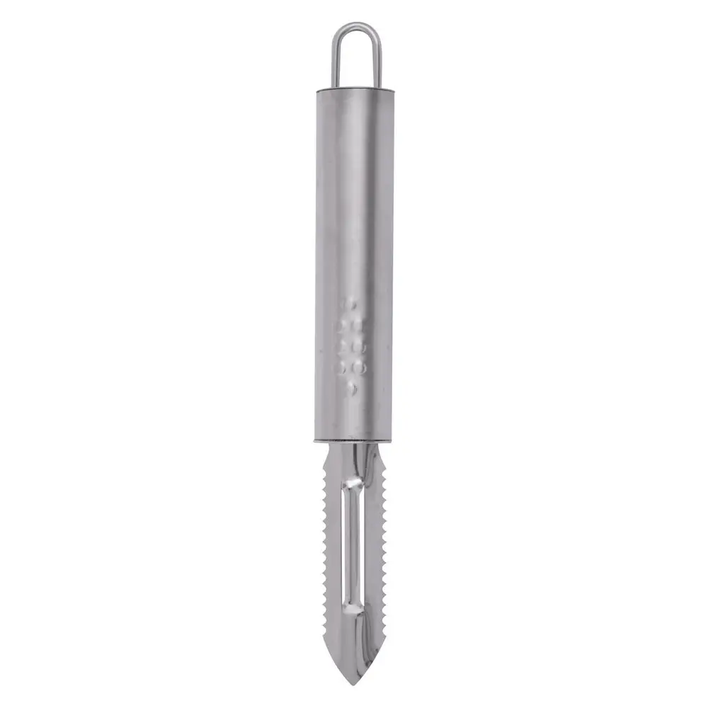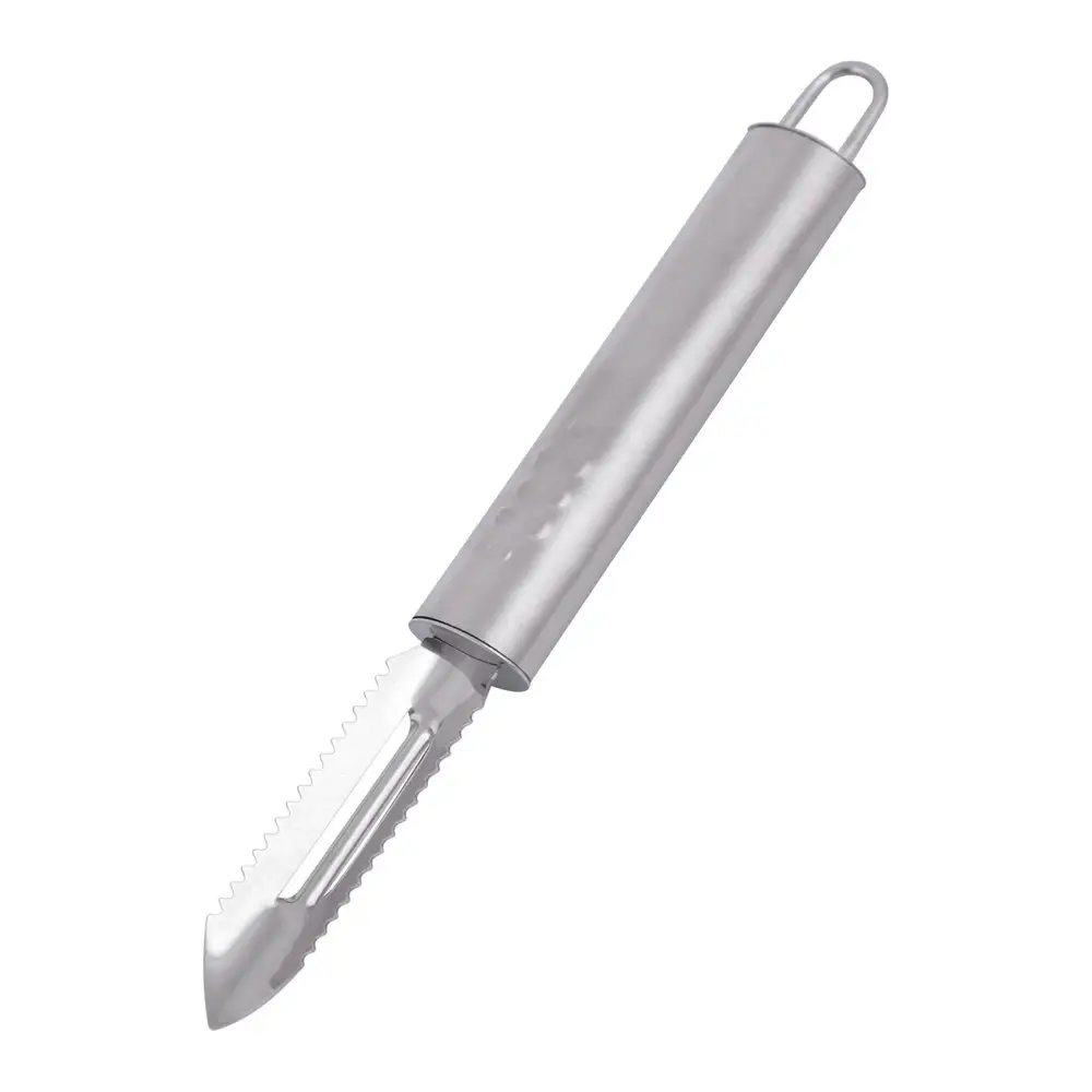 Овощечистка-рыбочистка — удобный инструмент для очистки от кожуры овощей и фруктов, а также чистки рыбы. Изделие изготовлено из коррозионностойкой (нержавеющей) стали. Приспособление выполнено в стильном дизайне, для удобства хранения на ручке есть петля. После применения мойте мягкой щеткой с жидкими моющими средствами.