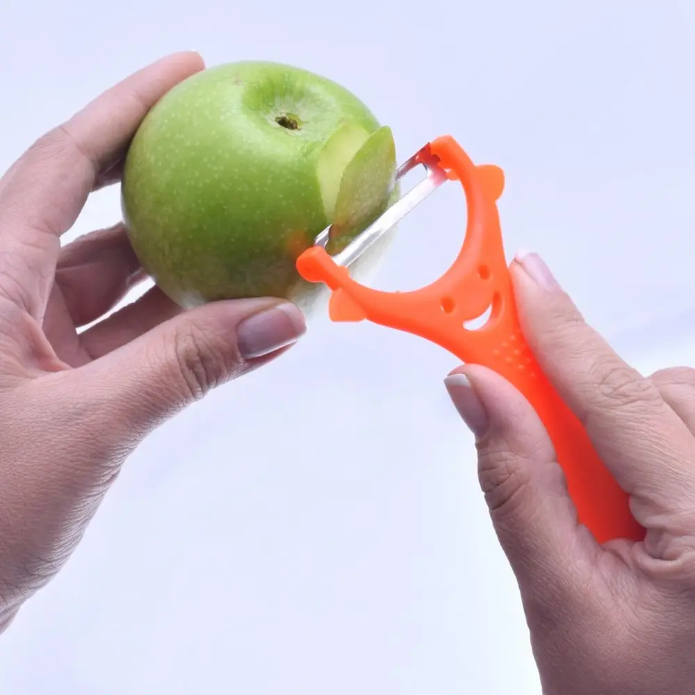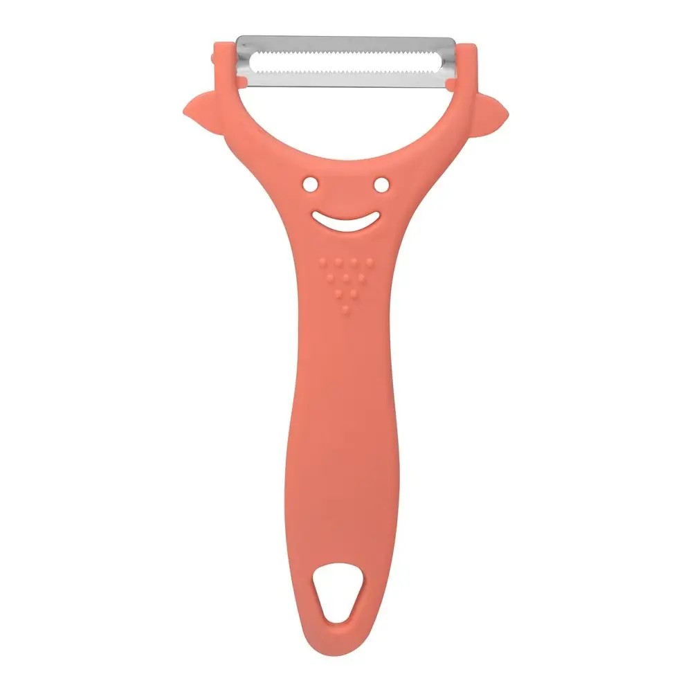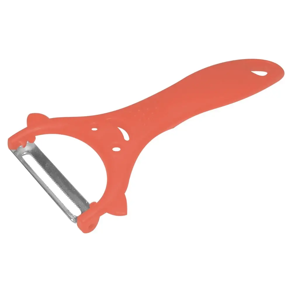Практичная овощечистка «Улыбка-эконом» — приспособление, которое будет кстати на любой кухне. Специальная форма ножа позволяет нажатием задавать глубину среза. Подходит как для тонкой кожицы, так и для толстой кожуры. По бокам расположены выступы, которые помогают удалять глазки, вырезать трещины, обрабатывать неровности. Инструмент прост в применении, поможет быстро и без усилий удалить кожуру с овощей и фруктов. Приспособление не нуждается в особом уходе. Лезвие изготовлено из коррозионностойкой стали, ручка из пластмассы (полипропилен). После использования промойте проточной водой с использованием моющих средств.