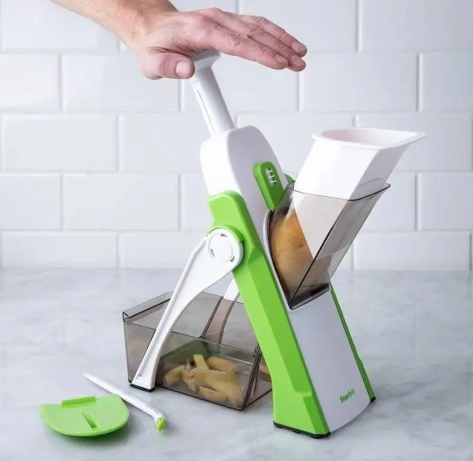 Многофункциональная овощерезка – это именно то, что вам нужно! Забудьте о медленной нарезке! Полуавтоматический режим гарантирует абсолютную безопасность, никакого ущерба вашим пальцам и ногтям!