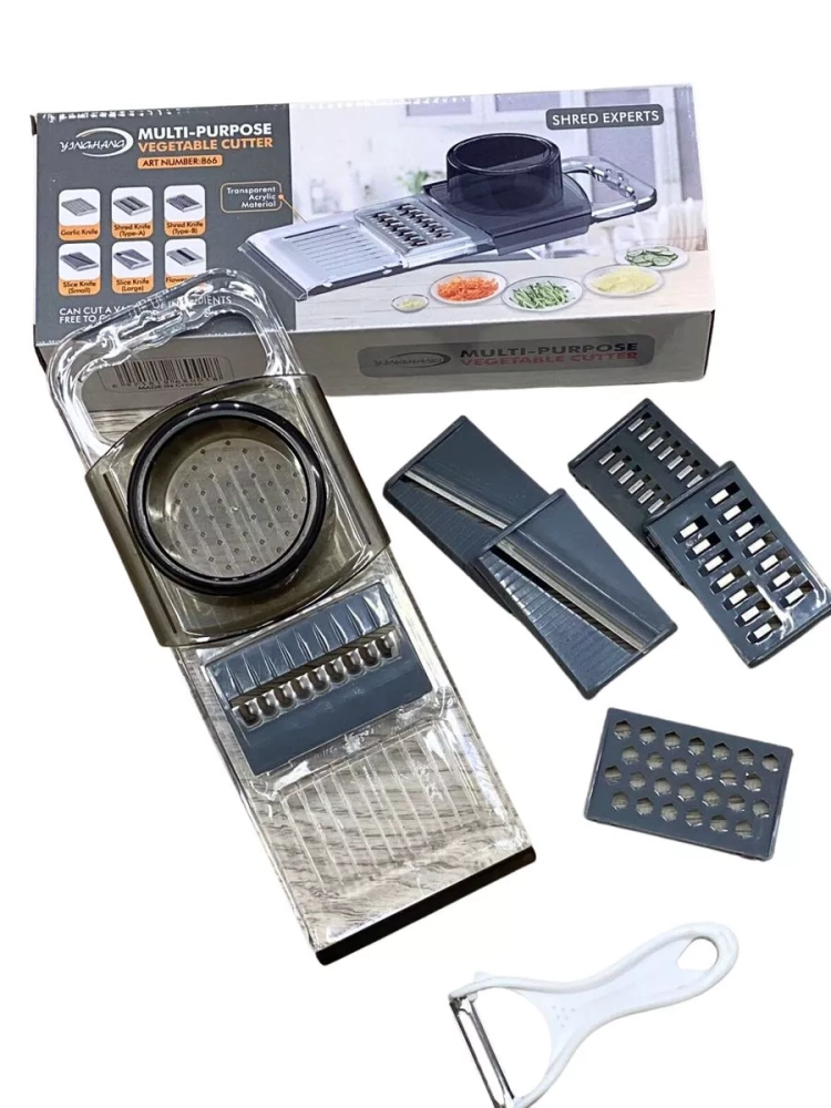 Ручная овощерезка - незаменимая помощница любой хозяйке. Облегчит работу в приготовлении любых блюд и рационально использует ваше время. Овощерезка - отличный инструмент для кухни, качественно нашинкует овощи, фрукты, сыр и другие продукты. Овощерезка представляет собой плоскость с укрепленными на ней лезвиями ножа. Тёрка для овощей имеет в комплекте: 6 насадок разной толщины и ручку-держатель для овощей и фруктов, овощечистку. Овощерезка выполнена из высококачественного пластика и нержавеющей стали. Овощерезка ручная занимает минимум места на кухне, позволяя оптимизировать пространство за счет удобного хранения насадок.