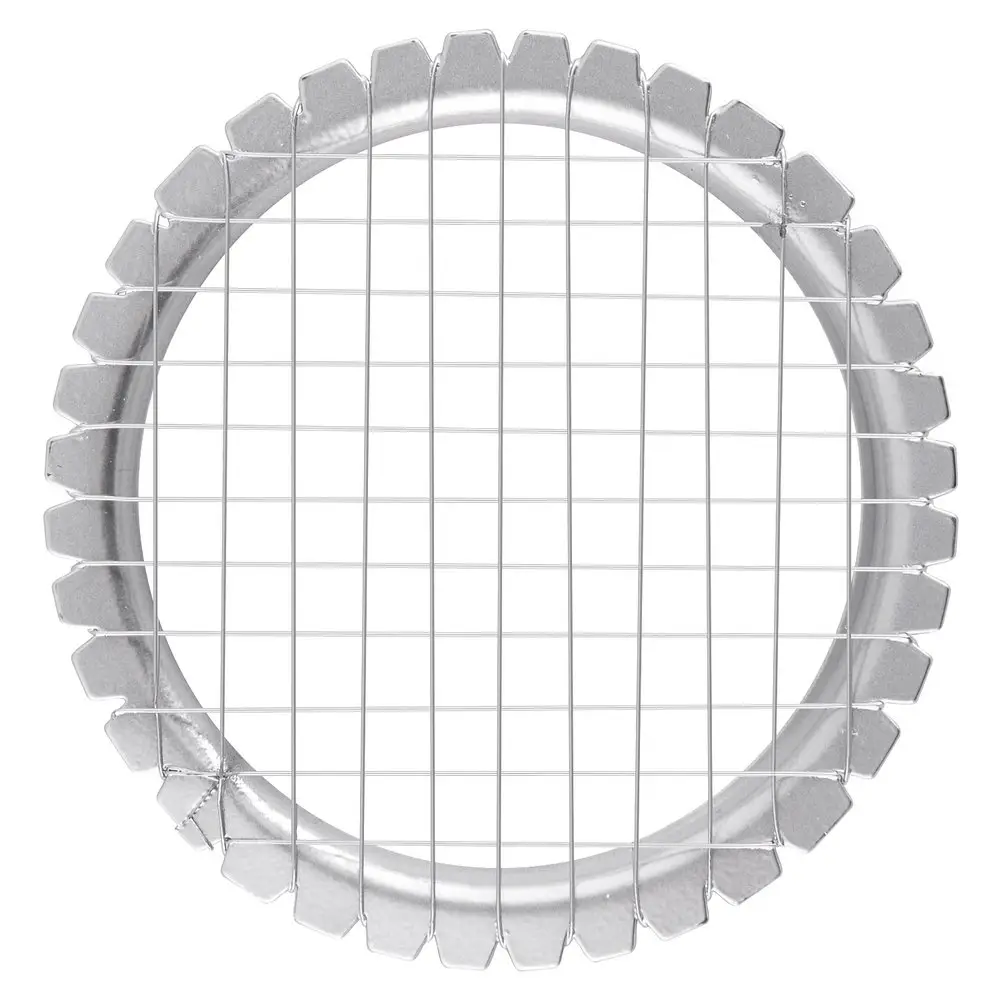 Можно порезать вареные овощи кусочками правильной геометрической формы. Диаметр 8,5 см, размер ячейки 5х5 мм. После использования промыть мягкой щеткой или губкой, можно с использование жидких моющих средств. Изготовлено: струны из коррозионностойкой (нержавеющей) стали.