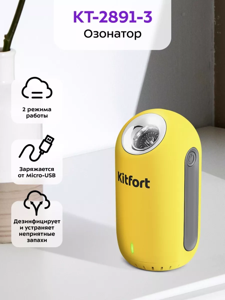 Озонатор Kitfort KT-2891 — это устройство, с помощью которого воздух в помещении насыщается озоном, который обеззараживает воздух и борется с неприятными запахами.