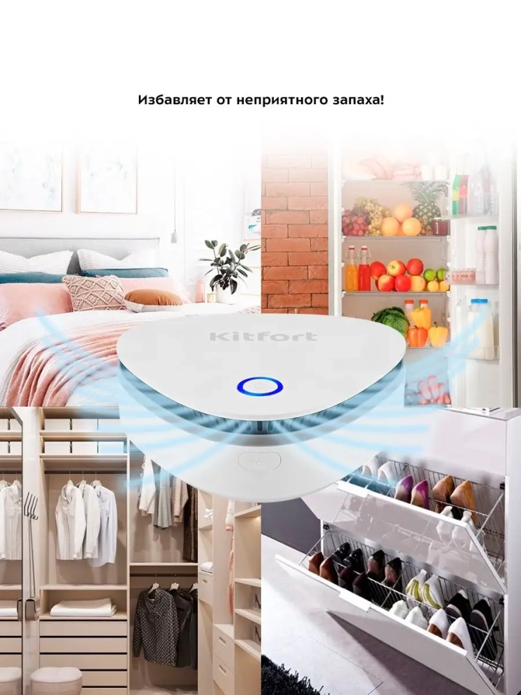 Озонатор KT-2852 способен устранять неприятные запахи в помещениях, в холодильнике, в шкафу, с предметов интерьера и одежды, а также дезинфицировать воздух.