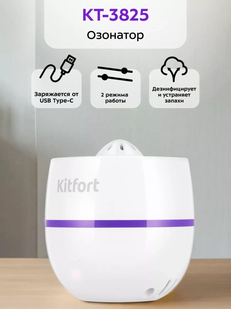 Озонатор Kitfort KT-3825 — это устройство, с помощью которого воздух в помещении насыщается озоном, который обеззараживает воздух и борется с неприятными запахами.