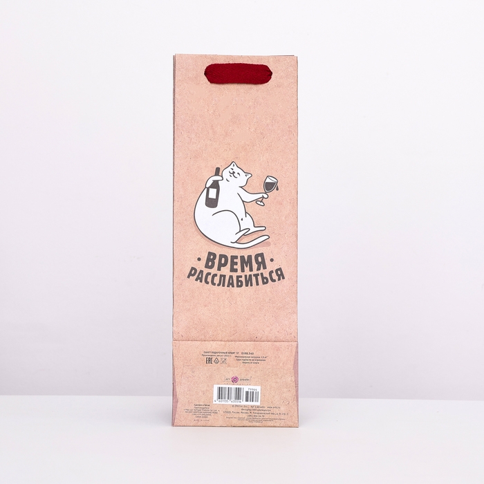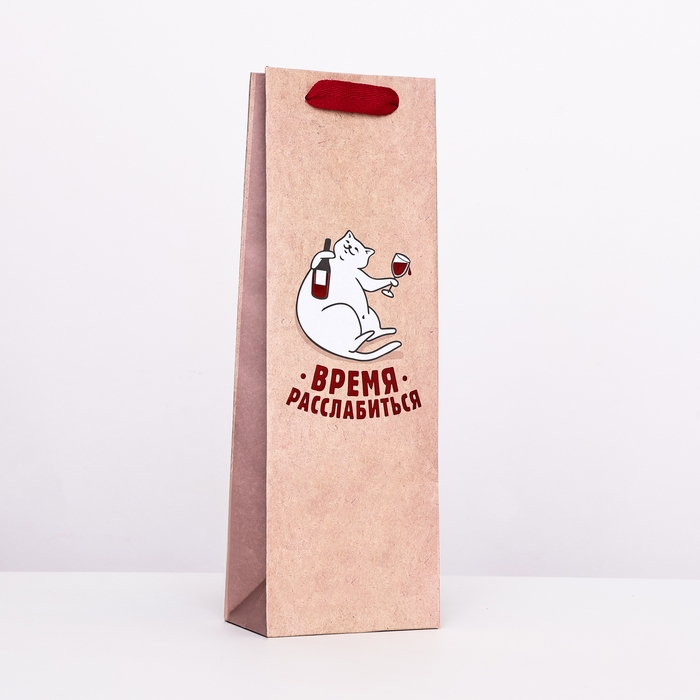 Пакет крафт под бутылку "Время расслабиться" 12 х 36 х 8,5 см