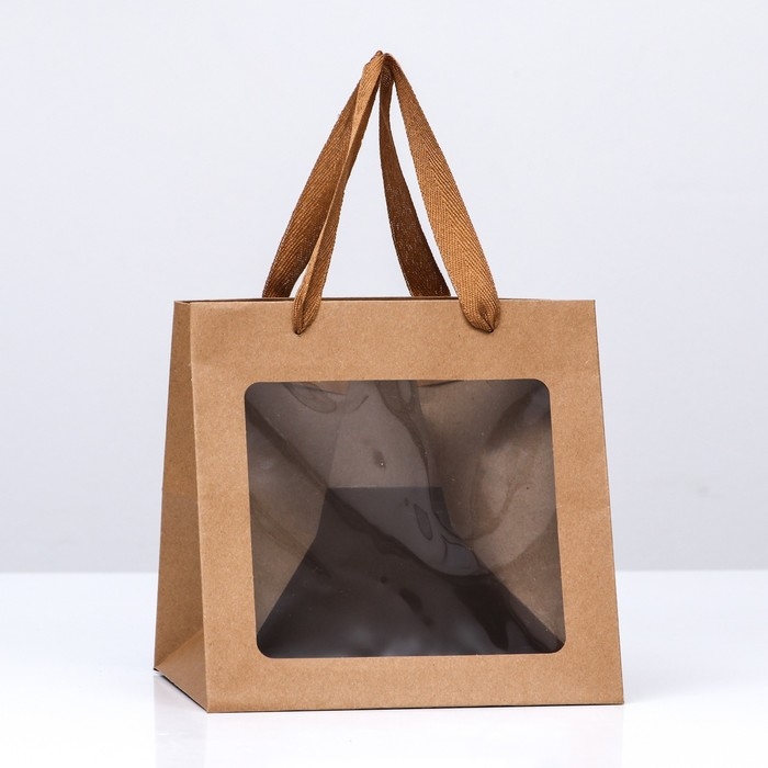 Пакет крафт с квадратным дном и окном размером 20 х 20 х 20 см крафт - это не только стильный и удобный аксессуар, но и отличное дополнение к вашим тортам, десертам и цветам.