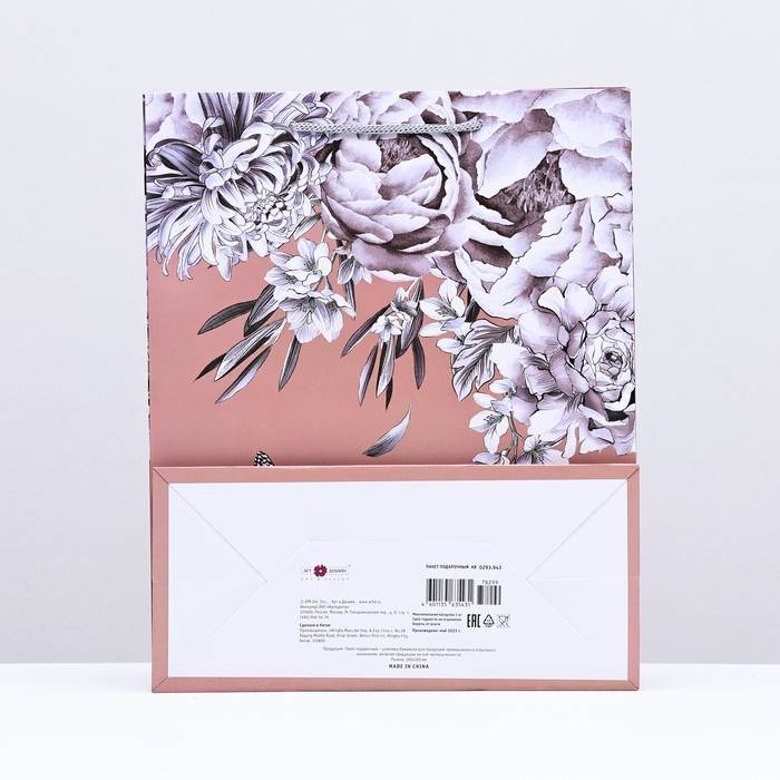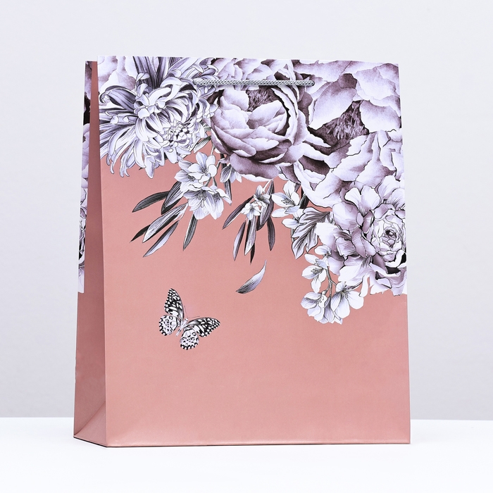 Пакет подарочный "Бабочка в цветах", персик, 26 х 32 х 12 см