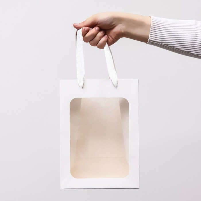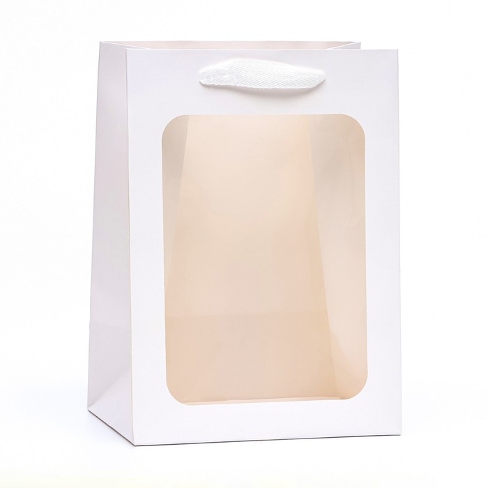 Пакет подарочный, с окном, 25 х 18 х 13 см, белый, 1шт.