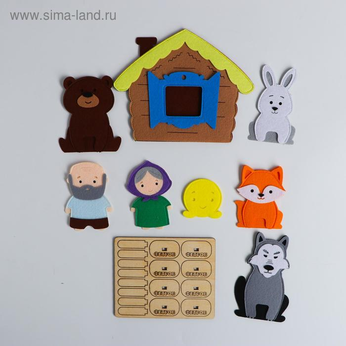 - Фигурка из фетра (8 см) — 6 шт. (дед, баба, лиса, заяц, волк, колобок, медведь).