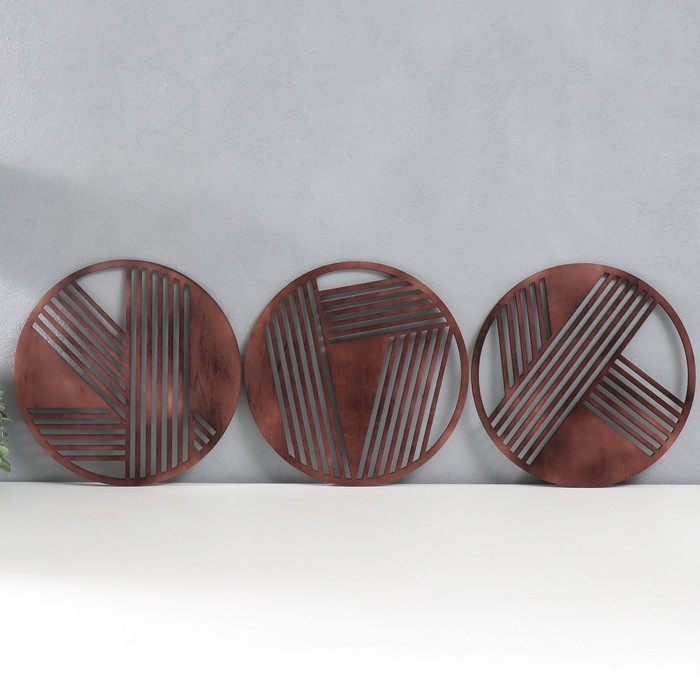 Панно интерьерное дерево триптих "Геометрия. Круги" коричневый набор 3 шт 30х30 шт