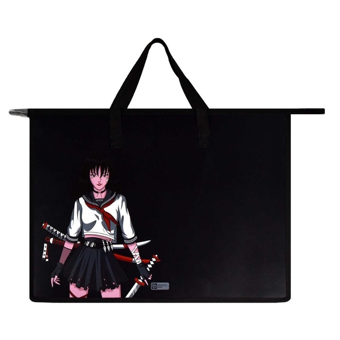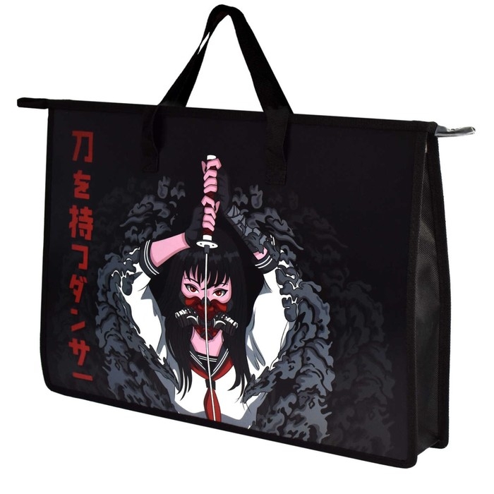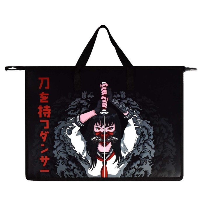 Папка для чертежей и рисунков А3, 450 х 330 х 90 мм, с ручками, пластиковая, молния сверху, Феникс Танец с катаной