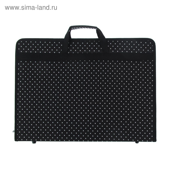 Папка для чертежей и рисунков для художников А3, 470 х 350 х 40 мм, с ручками, каркасная, текстильная, "Вдохновение" 2В31, с внешним карманом, белый горох