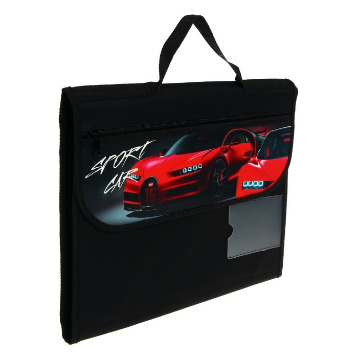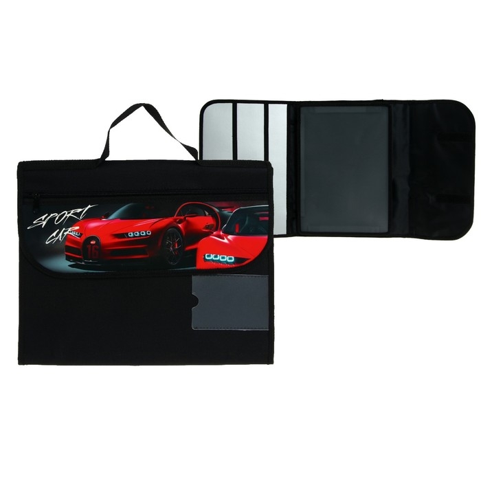 Папка для труда пластиковая А4 с ручками, текстиль, раскладная на липучке, "Красная тачка"