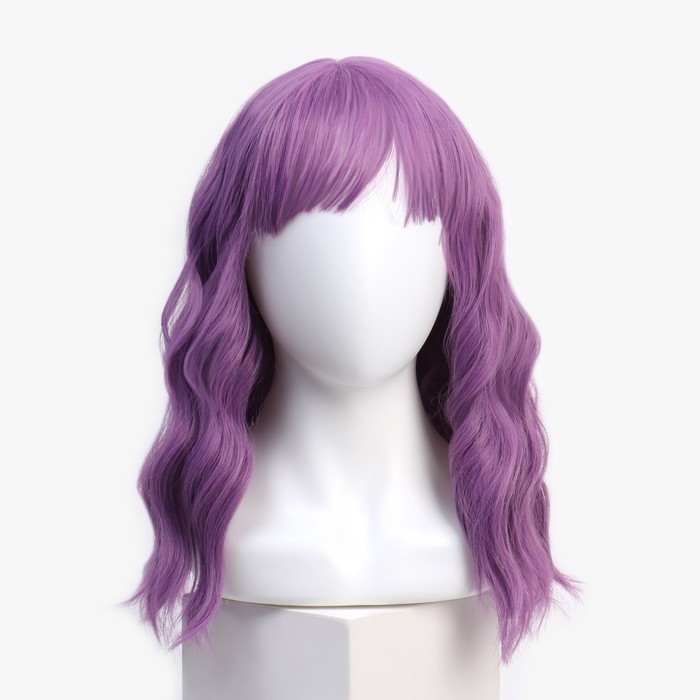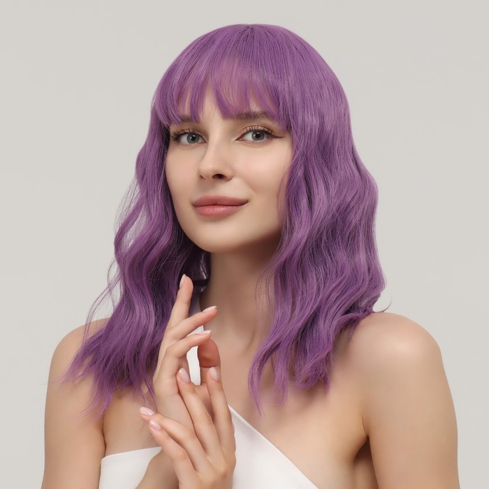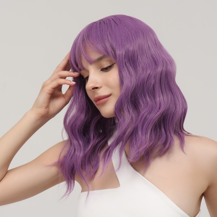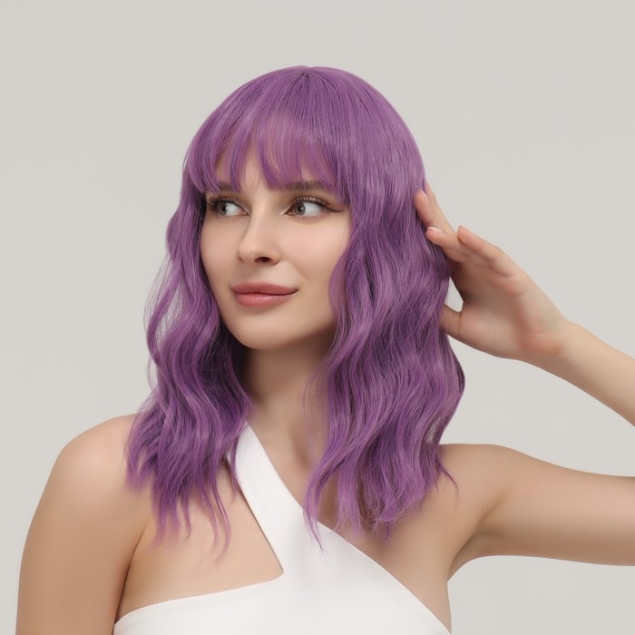 Парик искусственный, с чёлкой, каре имитация кожи, 40 см, 160 гр, цвет сиреневый