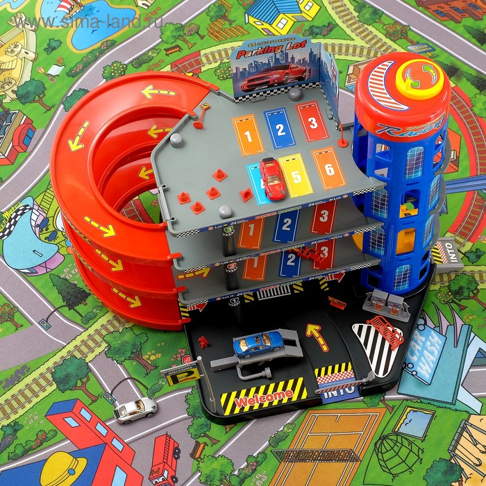 Парковка «Мега паркинг», 6 металлических машин + коврик