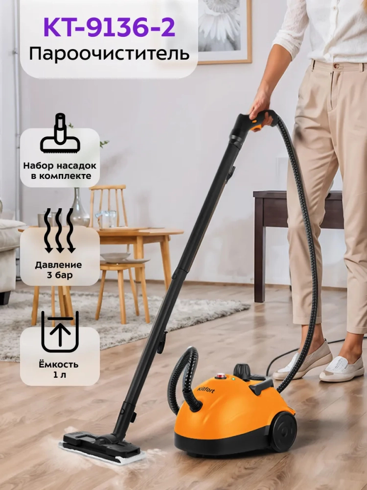Пароочиститель для дома для уборки КТ-9136 - 1500 Вт