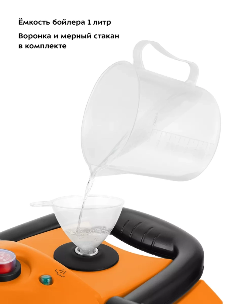 На корпусе пароочистителя есть ручка для переноски. Колеса позволяют с легкостью перемещать пароочиститель, не поднимая его. Большое количество насадок в комплекте поможет очистить труднодоступные или сильнозагрязненные поверхности.