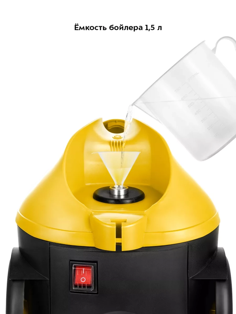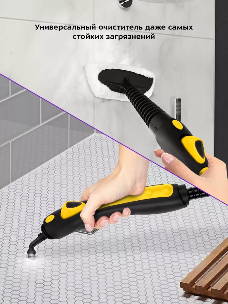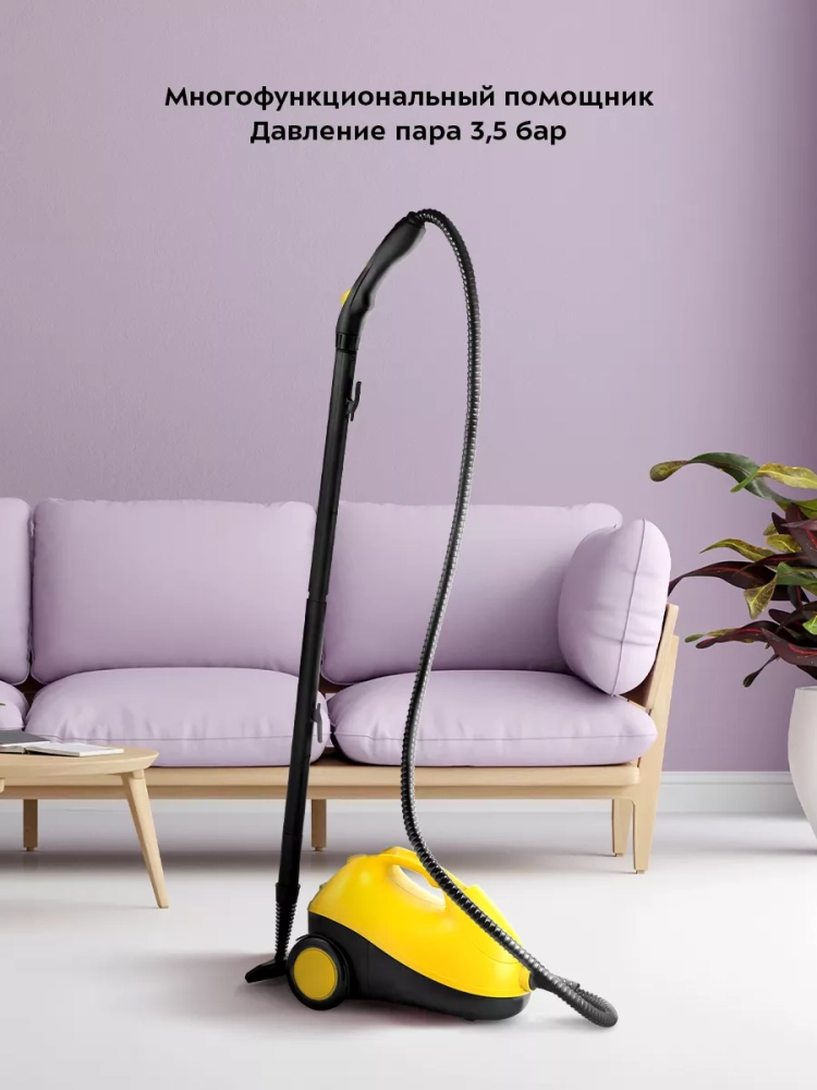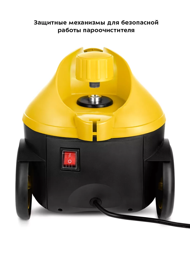 На корпусе пароочистителя есть ручка для переноса. Колеса позволяют с легкостью перемещать пароочиститель, не поднимая его. Паровой пистолет можно вставить в специальный отсек на корпусе пароочистителя для более удобного хранения прибора. Большое количество насадок в комплекте поможет очистить труднодоступные или сильнозагрязненные поверхности.