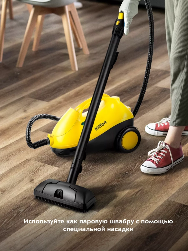 Пароочиститель Китфорт КТ-9141 предназначен для уборки интерьеров, полов и поверхностей, находящихся как внутри, так и вне помещений, а также для отпаривания тканей.