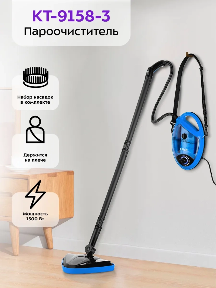 Пароочиститель для дома для уборки КТ-9158 - 1300 Вт