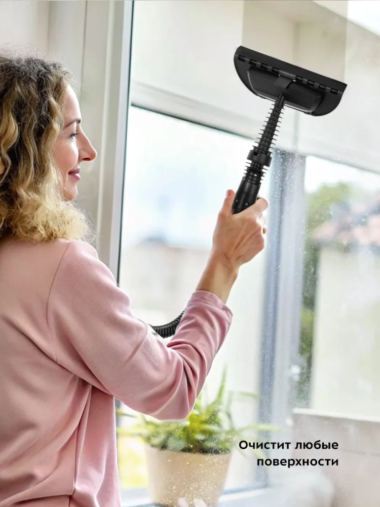 В случаях серьезного загрязнения используйте нейлоновую щетку, а также чистящие средства, которые надо наносить на загрязнения. Для очистки окон, зеркал и кафельной плитки используется насадка с резиновым скребком. Чтобы отпарить одежду и почистить обивку мягкой мебели, в комплекте есть тряпка для отпаривания, которая надевается на насадку для отпаривания. Благодаря наличию парового шланга есть возможность очистить труднодоступные места. Струйная насадка может использоваться для очистки плинтусов, щелей между плитками, протектора обуви и других труднодоступных мест. Угловая насадка справится с загрязнениями в таких местах, как углы и радиаторы отопления. Напольная щетка, которая подсоединяется к удлинительным трубкам, служит для очистки напольных покрытий.