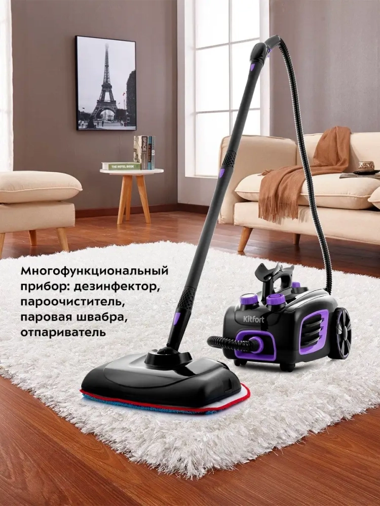 Пароочиститель Kitfort КТ-932 — многофункциональный аппарат, способный заменить паровую швабру, дезинфектор, и отпариватель для тканей. Используя силу горячего пара, пароочиститель великолепно очищает поверхности и обеспечивает деликатную глажку вещей. При этом прибор очень удобен в использовании, и работа с ним не требует от пользователя каких-то особых навыков и умений.