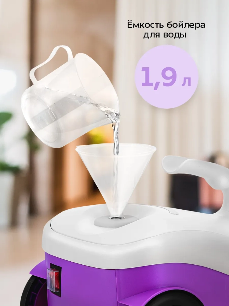 Пароочиститель Kitfort КТ-9362 — это идеальное решение для эффективной уборки в вашем доме. Этот мощный пароочиститель, обладающий мощностью 2000 Вт, предназначен для очистки интерьеров, полов и различных поверхностей как внутри помещений, так и снаружи. Благодаря наличию удобной ручки и колесиков, его легко перемещать по дому без необходимости поднимать устройство. Комплект включает множество насадок, что позволяет справляться с труднодоступными местами и сильнозагрязненными участками. Все аксессуары удобно хранить в специальном кейсе, который идет в комплекте. Паровой очиститель Kitfort эффективно удаляет грязь, жир и известковые отложения благодаря горячему пару под давлением до 4 бар. Это делает его незаменимым помощником при борьбе с патогенными микроорганизмами и бактериями. Использование пароочистителя исключает необходимость применения бытовой химии при мытье и чистке поверхностей — это особенно важно для аллергиков или семей с маленькими детьми. Устройство подходит для отпаривания тканей мебели или одежды. Технические характеристики этой универсальной техники включают напряжение ~220–240 В при частоте 50/60 Гц и класс защиты I от поражения электрическим током. Бойлер из нержавеющей стали имеет рабочую емкость 1,5 литра и разогревается за 7 минут. Непрерывная подача пара парагенератора возможна до 30 минут со скоростью подачи пара около 45 г/мин ±5%. Длина парового парогениратора шланга составляет 2 метра, а длина шнура — почти три метра (2,9 м), что обеспечивает свободу передвижения во время уборки дома или офиса.